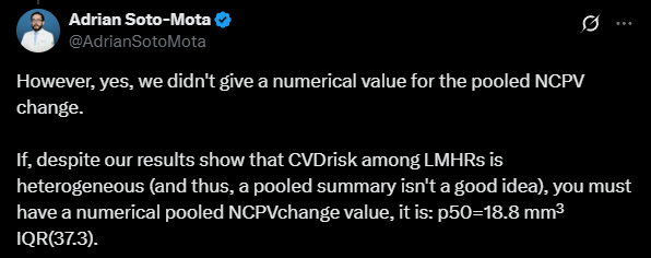 话虽如此,正如我在 X 上所说,Keto-CTA 研究的要点不容忽视:LMHR 表型并不能预防动脉粥样硬化。相反,它似乎与比我们预期更严重的斑块进展相关,即使在代谢健康状况良好的情况下也是如此。