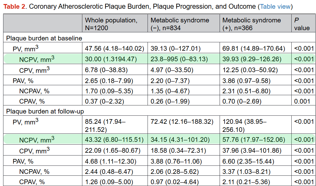 从主要结果开始:非钙化冠状动脉斑块体积(NCPV)