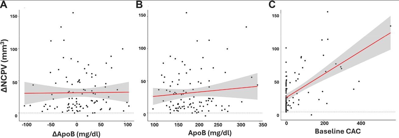 尽管围绕斑块进展存在诸多令人担忧的发现,但作者选择将焦点完全集中在其他方面:斑块体积变化与 apoB 水平之间缺乏关联,而 apoB 是一种被广泛认为是导致动脉粥样硬化发展的蛋白质。